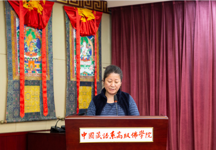 辦公室曲陽卓瑪以《學習黨史明理增信,立足本職牢記使命》為題發言,她表示,通過對新民主主義革命時期的歷史學習后,深感紅色政權來之不易,新中國來之不易。中國共產黨波瀾壯闊的歷史是教導后人熱愛祖國,熱愛生活的最好教材,作為一名普通教職員工必須通過學習黨史明理增信,立足本職工作為藏傳佛教愛國愛教高素質僧才的培養做出自己的貢獻。