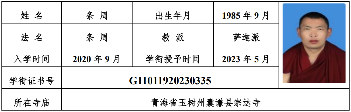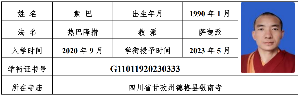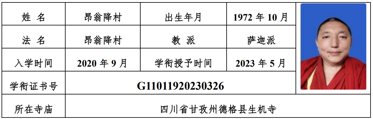 中國藏語系高級佛學院第十九屆“拓然巴”高級學銜獲得者名單