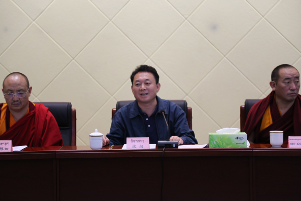 在認真聽取大家發言后,沈陽對藏傳佛教“拓然巴”高級學銜獲得者的精神風貌給予充分肯定。他指出,黨委政府十分重視藏傳佛教“拓然巴”高級學銜獲得者的培養使用,希望大家繼續深入學習領會習近平新時代中國特色社會主義思想,堅定正確政治方向,為藏傳佛教在新時代的傳承發展做出更大貢獻。他強調,作為“拓然巴”,一要想得更深,看得更遠,要有更開闊的視野、更大的責任感、更有自己的主見,充分發揮好自身作用。二是要求要更高、更嚴,政治上要更堅定、學問上要更精進、戒律上要更嚴格、品德上要更服眾,更好推動藏傳佛教與社會主義社會相適應。三要說得上話,起得了作用,堅決維護祖國統一,堅決維護民族團結,堅決維護社會穩定。