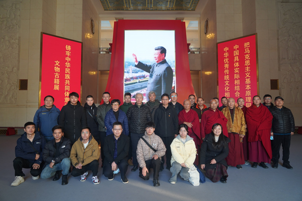 為深入學習貫徹習近平總書記在中共中央政治局第九次集體學習時的重要講話精神,教育引導教職工不斷鑄牢中華民族共同體意識,推動藏傳佛教代表人士培養工作高質量發展,11月24日,學院黨組書記、常務副院長王志剛帶領教職工前往民族文化宮“鑄牢中華民族共同體意識文物古籍展”參觀見學。國家民委黨組成員、副主任邊巴扎西,國家民委協調司副司長馬志敏在展館熱情歡迎學院教職工的到來。