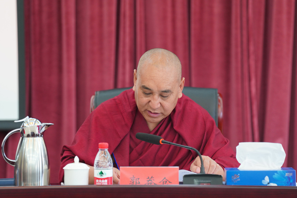 高級學銜評定委員會副主任、中國藏語系高級佛學院副院長郭莽倉作總結(jié)講話